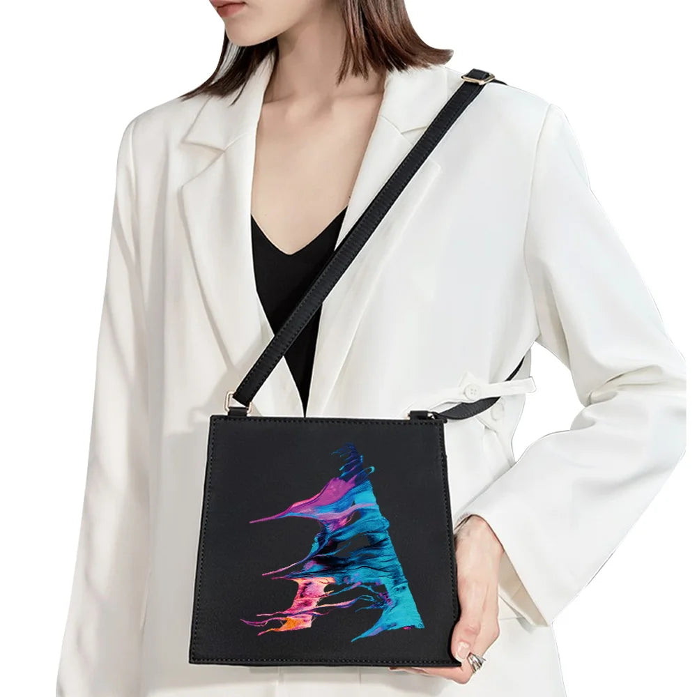 Stay stylish with this chic handbag featuring a unique hand paint letter pattern. Perfect for daily commute, it includes a mobile phone compartment.