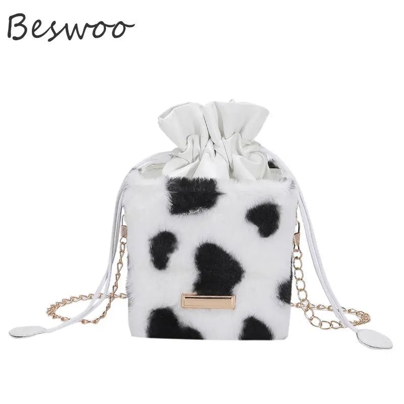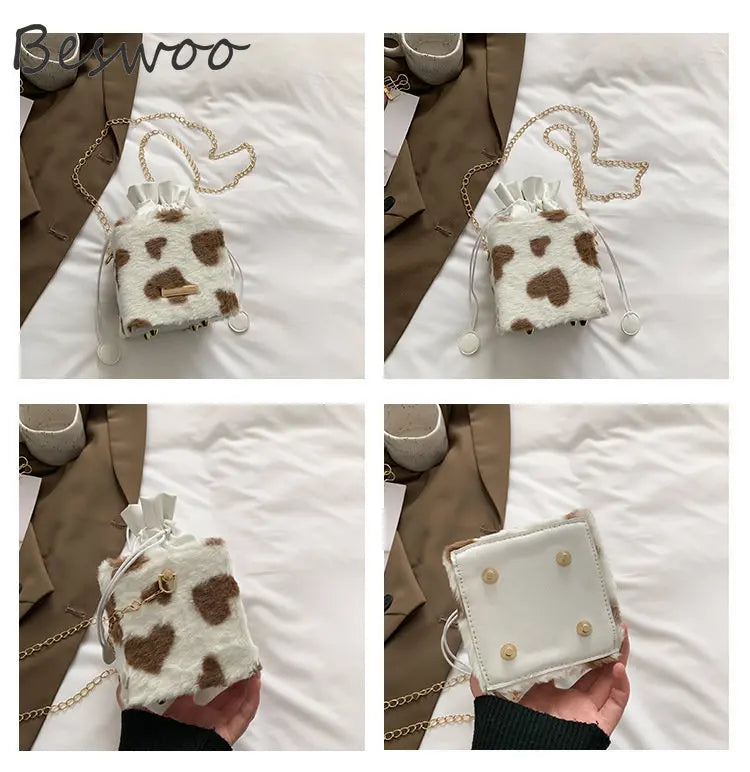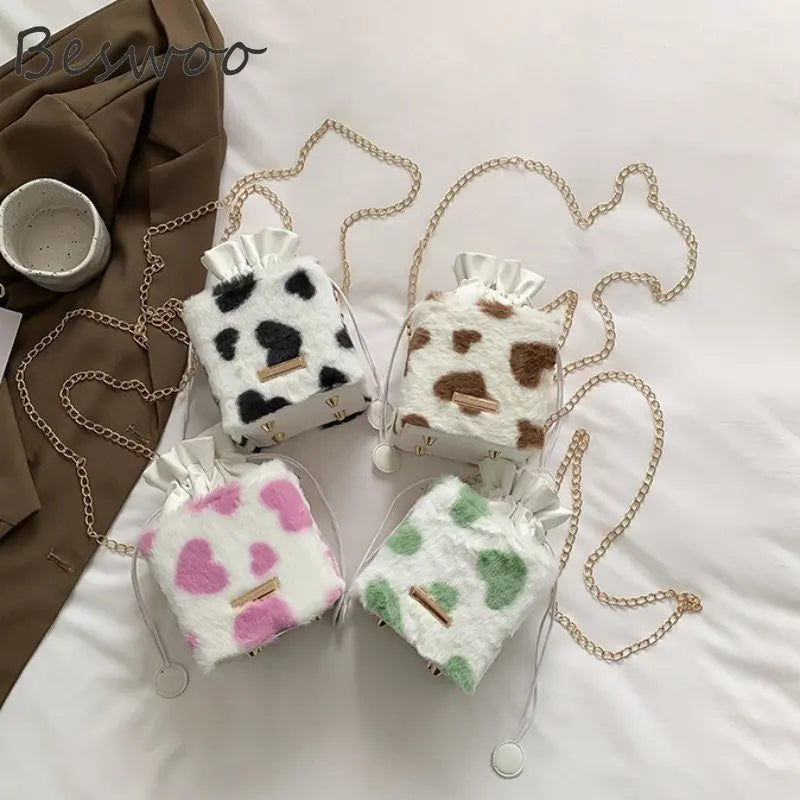 Heart Prints Messenger Chain Shoulder Bag Plush Crossbody Bags for Women