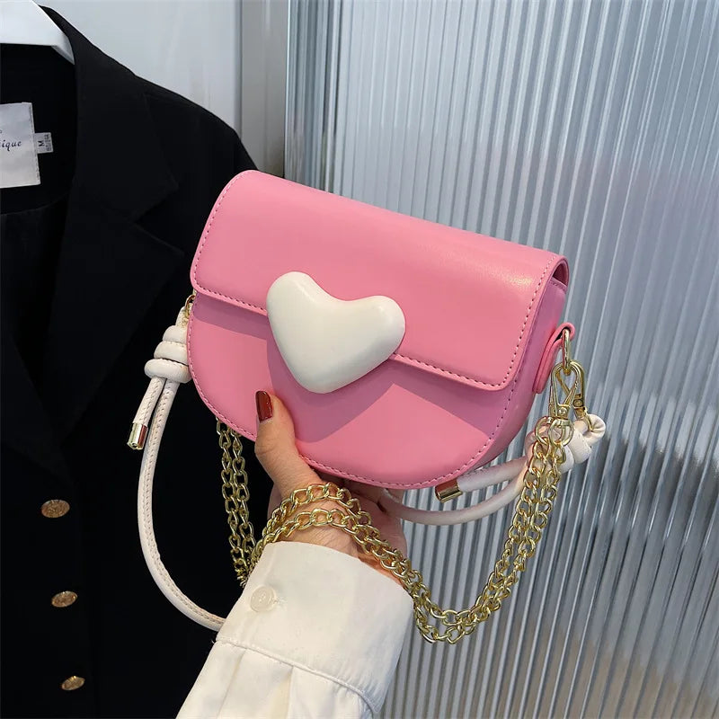 Heart-shaped Chain Shoulder Bag Women Small Flap Handbag Female Crossbody Messen