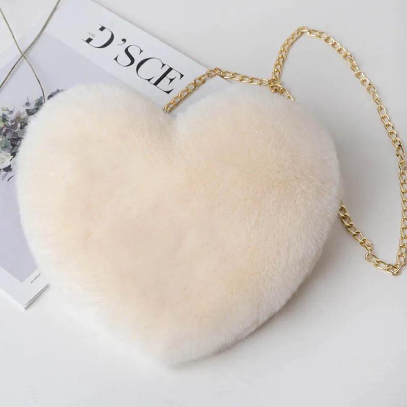 Heart Shaped Faux Fur Crossbody Wallet Purse Chain Shoulder Bag