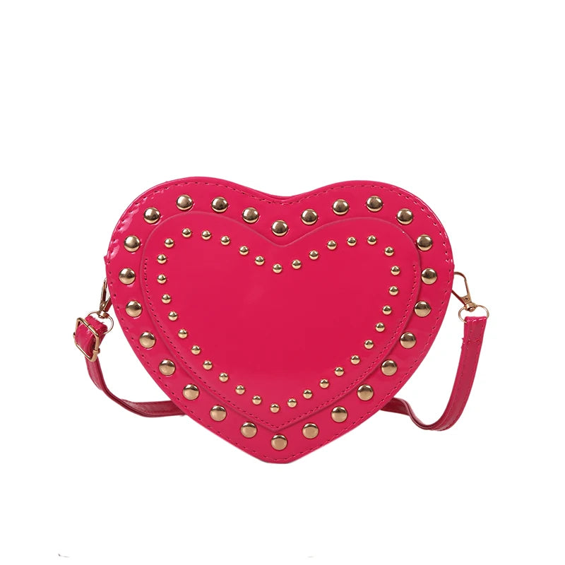 Heart Shaped Shoulder Bag for Women Vintage Rivet Crossbody Bags
