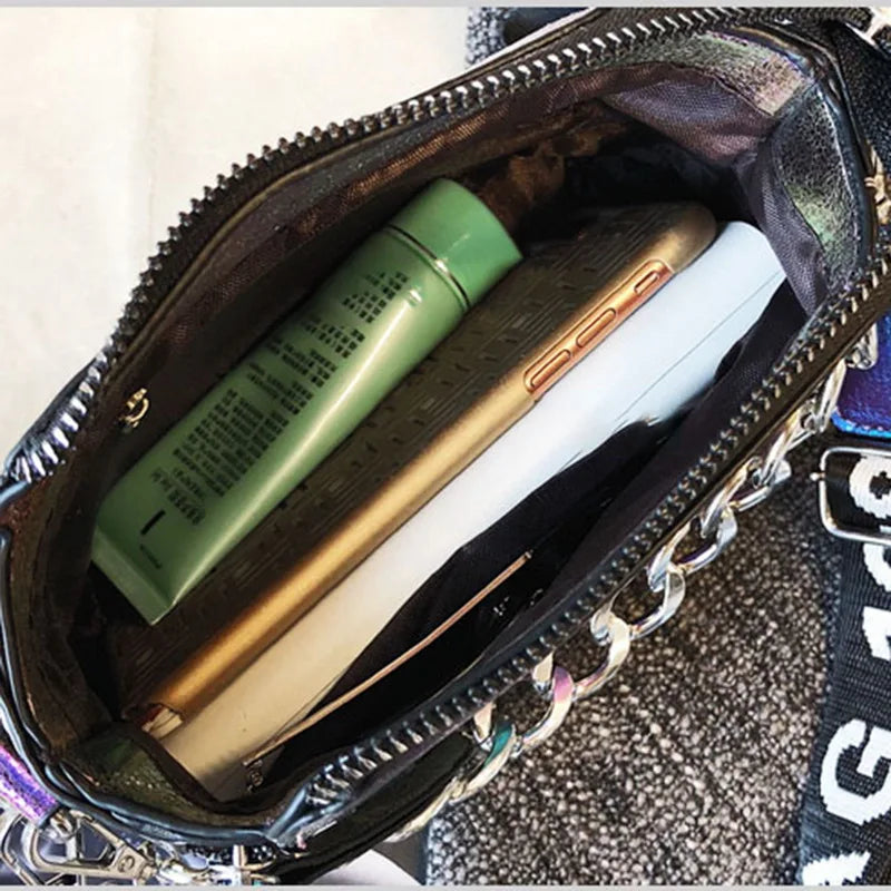 This stylish handbag is perfect for holidays and daily use. Made of quality PU material, it features a letter design and a comfortable shoulder strap.