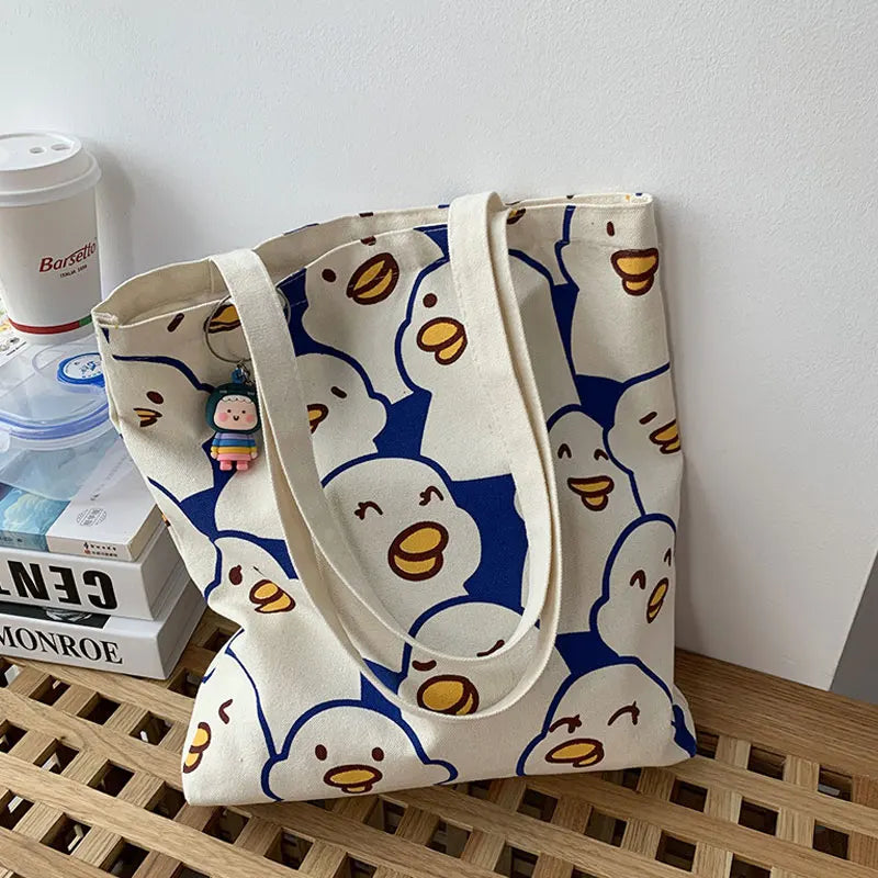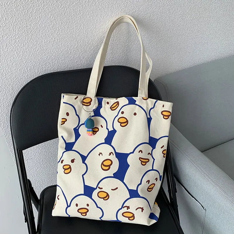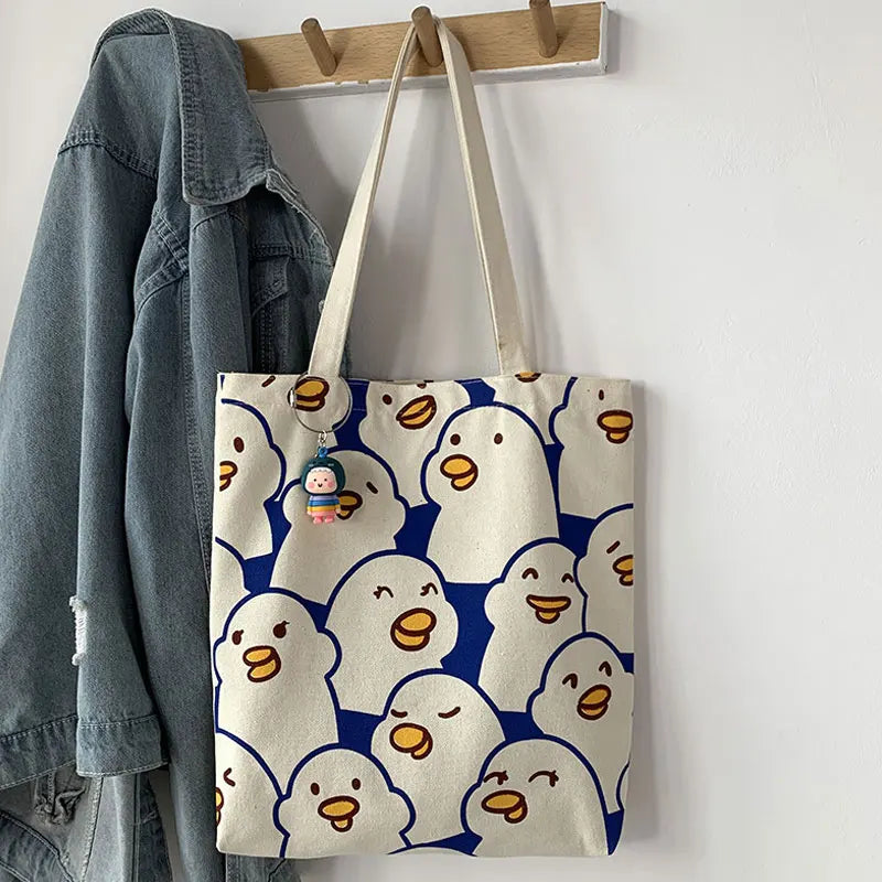 Stay fashionable and eco-friendly with this canvas tote bag featuring a charming Japanese ducks print. Perfect for shopping, school, and everyday use.