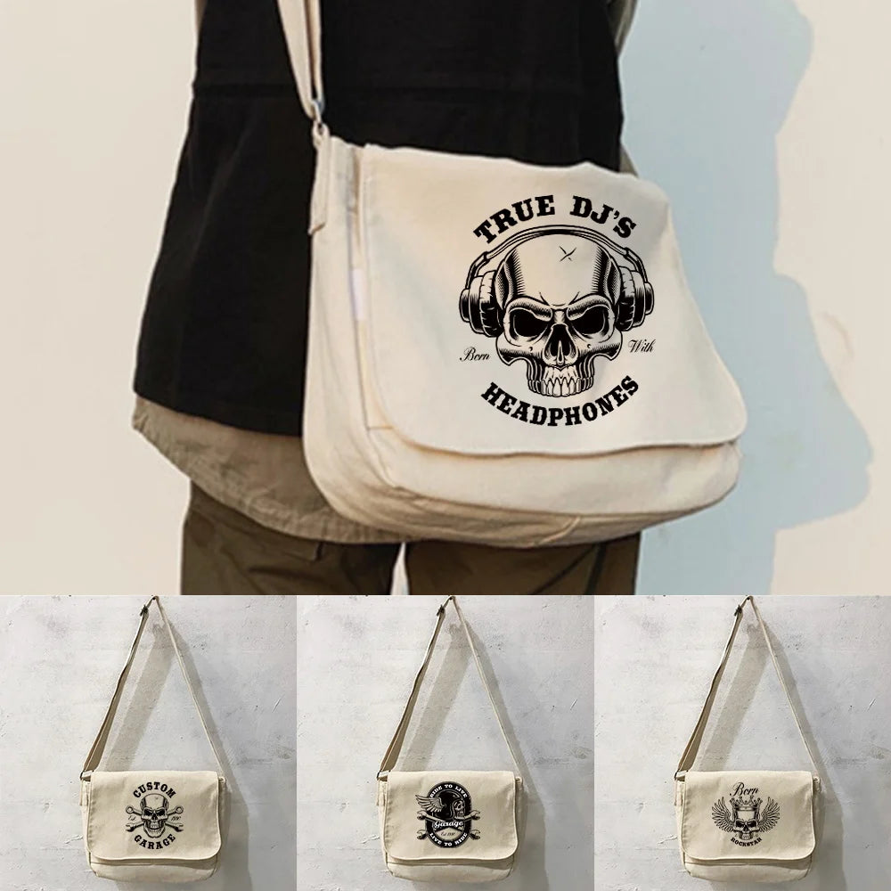 Japanese Tooling Messenger Bag Skull Pattern One-Shoulder Bag