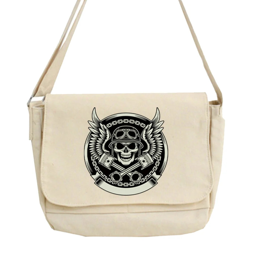 Japanese Tooling Messenger Bag Skull Pattern Student Style