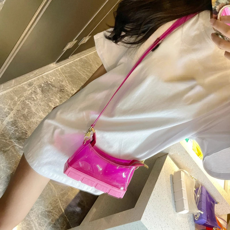 This women's PVC purse and handbag is stylish, versatile, and perfect for daily use. The jelly material adds a unique touch to your outfit.