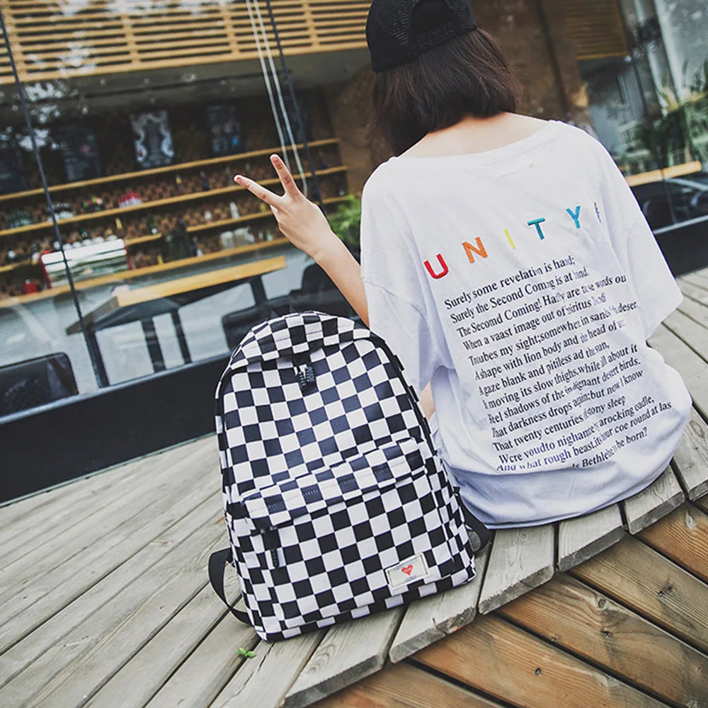 Joker Casual Canvas Backpack Plaid Zipper School Bag
