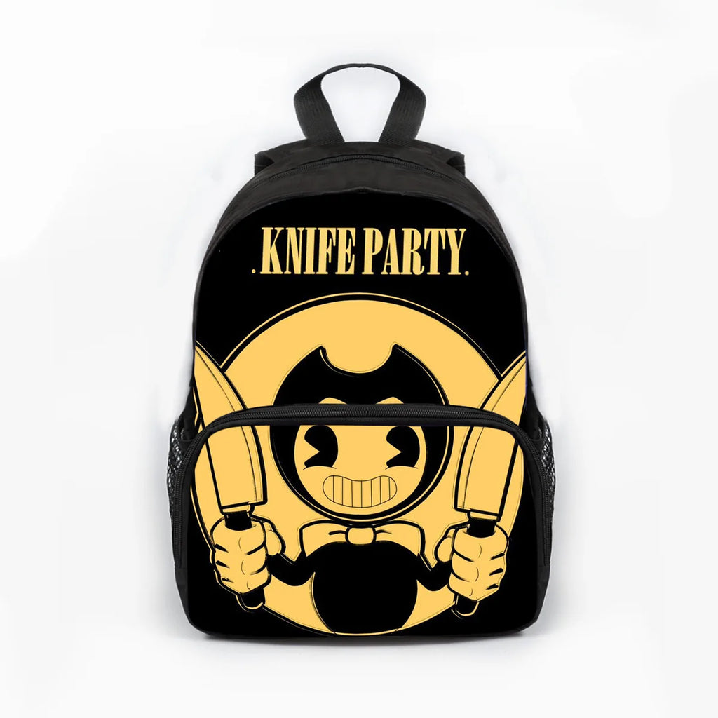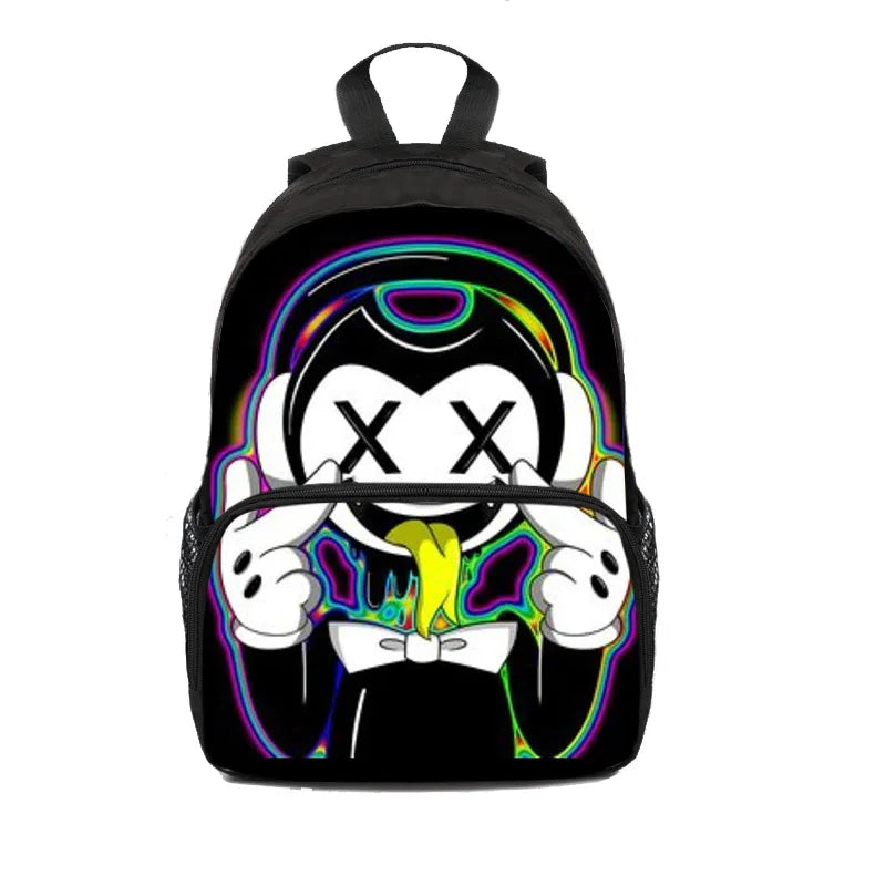 This backpack is perfect for kindergarten students. It features a fun Bendy design and is suitable for travel or school.