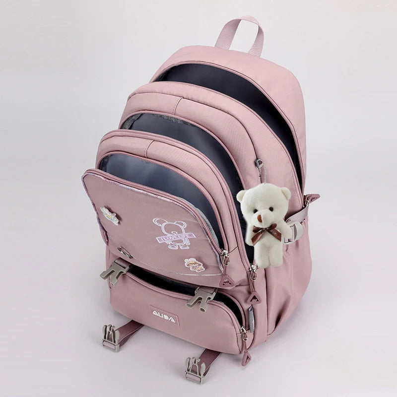 This solid primary backpack is perfect for children and teenage girls. Made of waterproof nylon, it's ideal for school use.