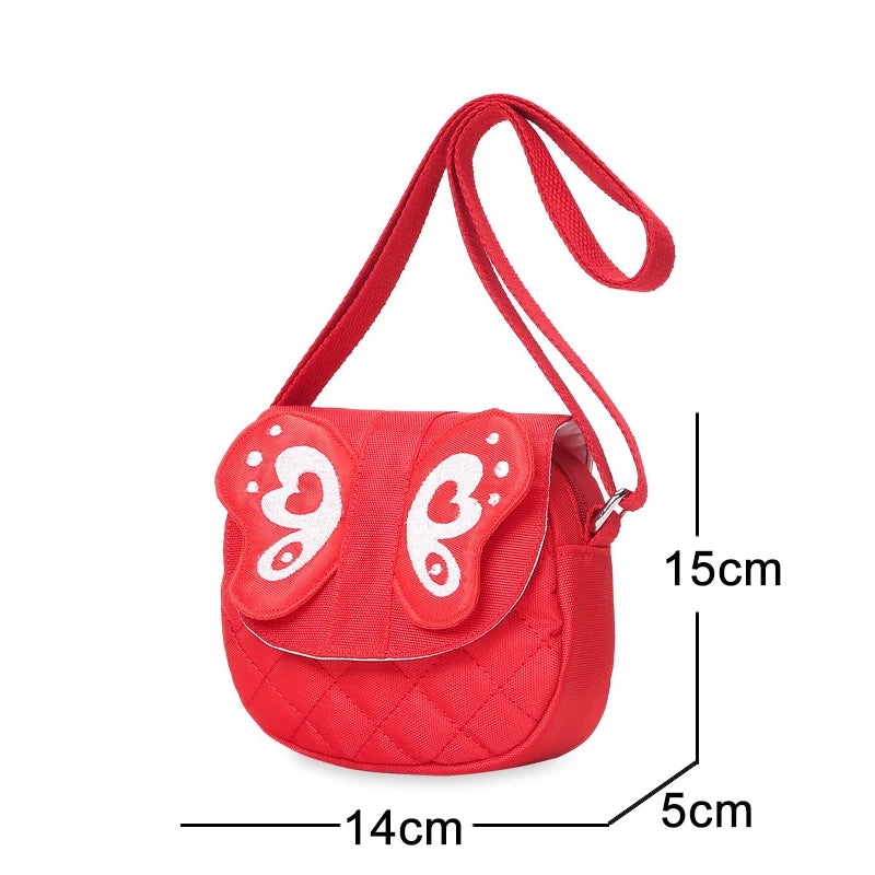 This lightweight round mini girl messenger bag features a cute cartoon butterfly design, perfect for kindergarten kids.