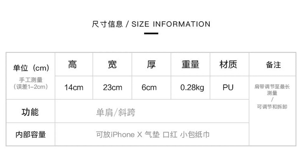 This stylish bag is perfect for any occasion, made from high-quality PU material. It can be worn as a shoulder or crossbody bag. The adjustable chain strap adds a chic touch.