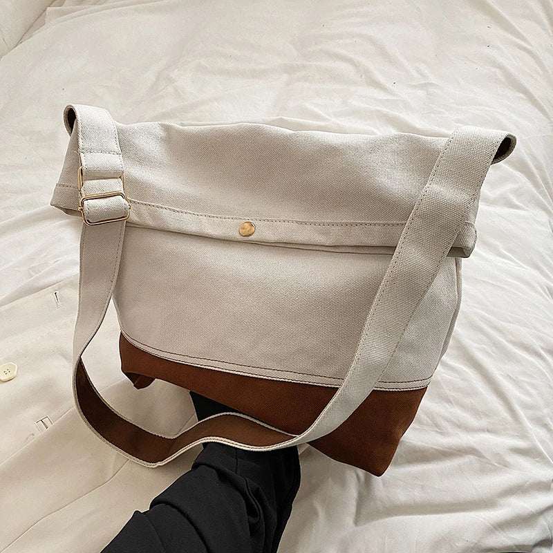 Large Canvas Crossbody Bag for Women Cotton Cloth Handbag