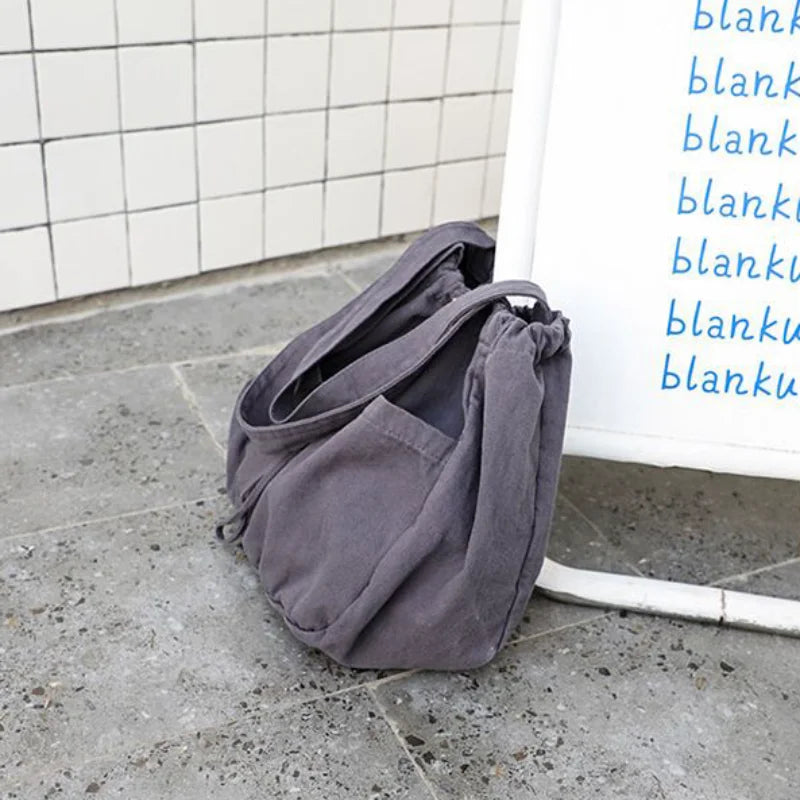 Spacious canvas shoulder bags with underarm pockets, perfect for a retro and preppy look. Ideal for couples and versatile style.
