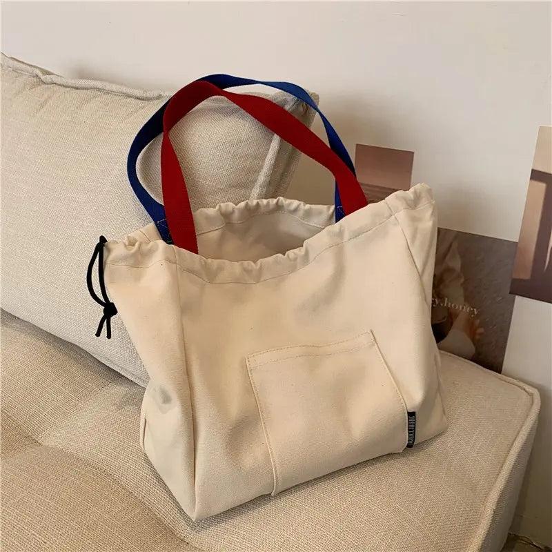 This canvas bag is a spacious and versatile accessory for women of all ages. It is perfect for everyday use, shopping, or running errands. The durable fabric and trendy design make it a must-have for any woman's wardrobe.