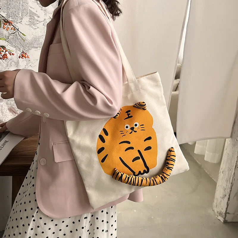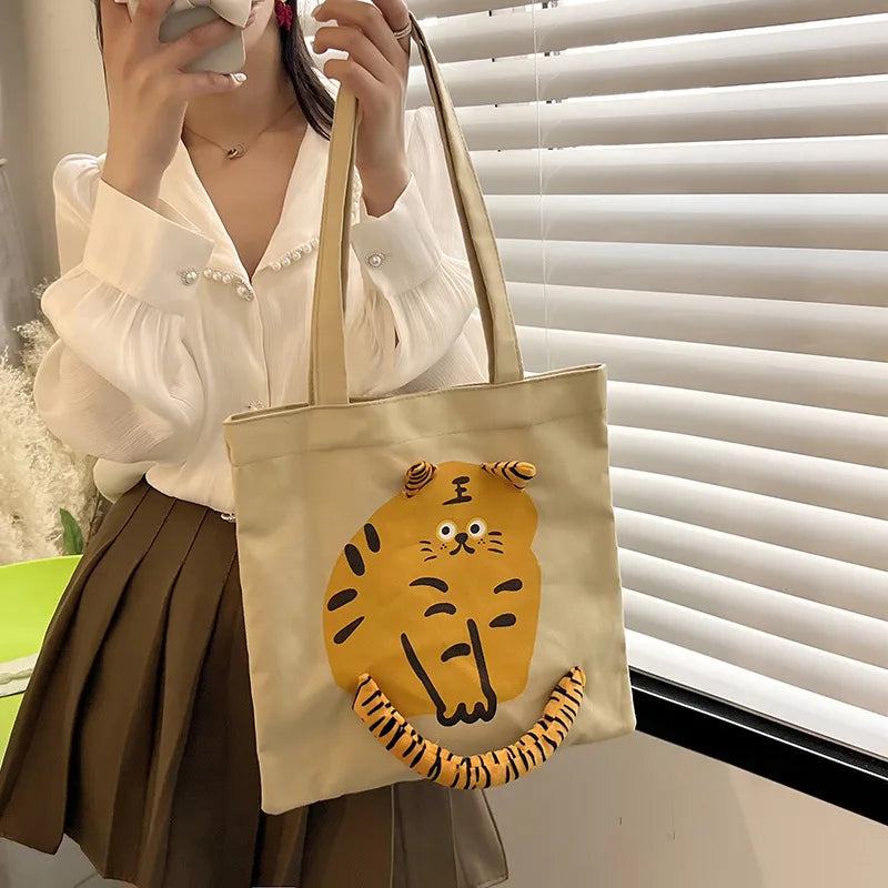 This canvas bag is perfect for girls with its large capacity and trendy tiger print design. It's ideal for students and everyday use.