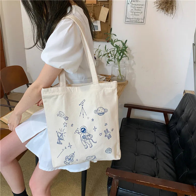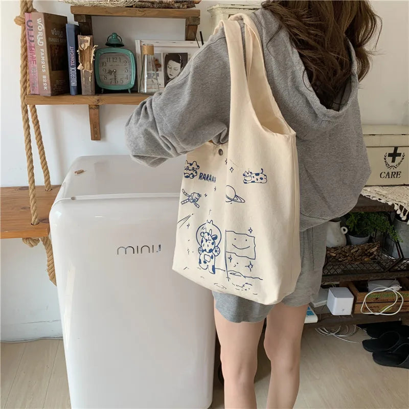 This eco-friendly canvas bag is ideal for students and shoppers. It features a stylish print design, ample space for books, and a versatile tote style. Perfect for leisure outings.