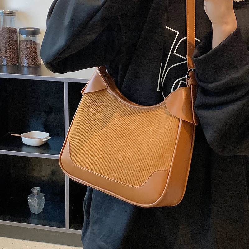 Large Capacity Corduroy Shoulder Bag Women's Handbags