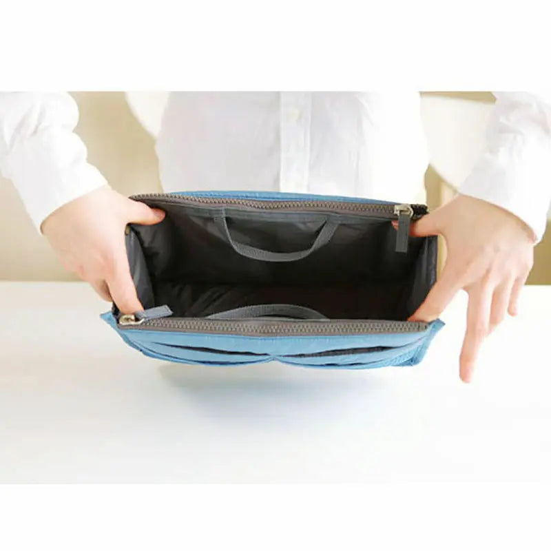 This portable cosmetic bag is perfect for storing makeup essentials. It features multiple built-in pockets for easy organization. Available in 5 stylish colors.