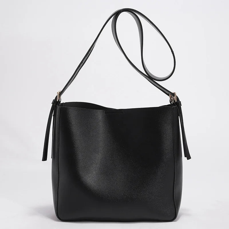 Stay stylish and organized with this simply designed crossbody bag. Perfect for casual outings or shopping trips, featuring a wide strap and bucket design.