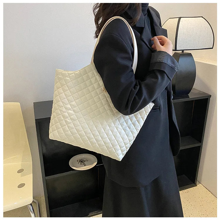 Large Capacity Quilted Shopper Bag Shoulder Handbag Women Padded Tote