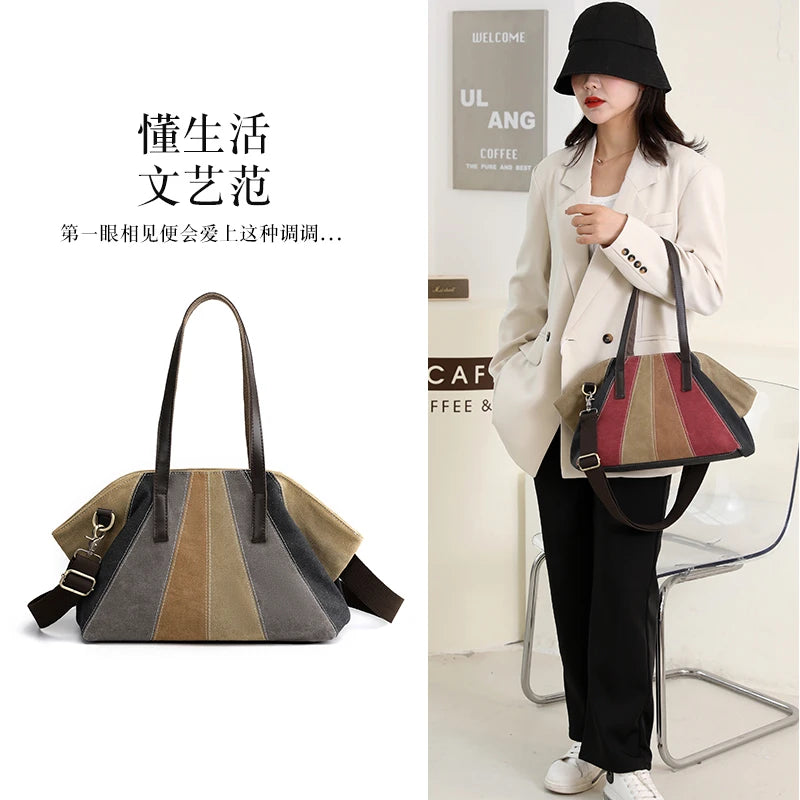 Large Capacity Shoulder Bag Soft Fashionable Canvas Handbags