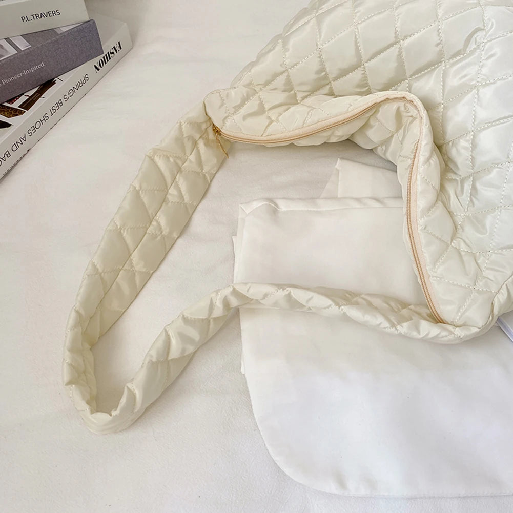 Large Capacity Shoulder Bag Women Lattice Pattern Handbag Solid Travel Totes