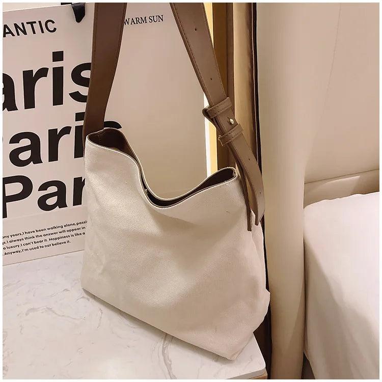Stay stylish and organized with this spacious tote bag that is perfect for daily commute. Made of high-quality canvas, it is durable and practical for college students.