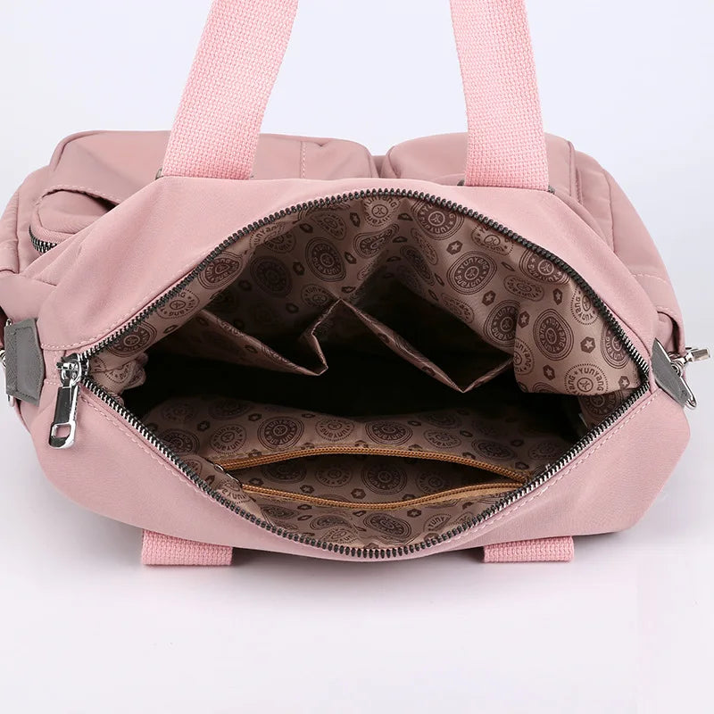 This crossbody bag is made of durable nylon cloth, perfect for middle-aged mothers. It offers a large capacity for all your essentials.