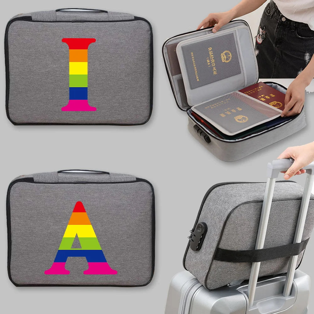 Securely store your important documents in this lockable organizer bag featuring rainbow printing. The password lock provides privacy and protection for your stuff.