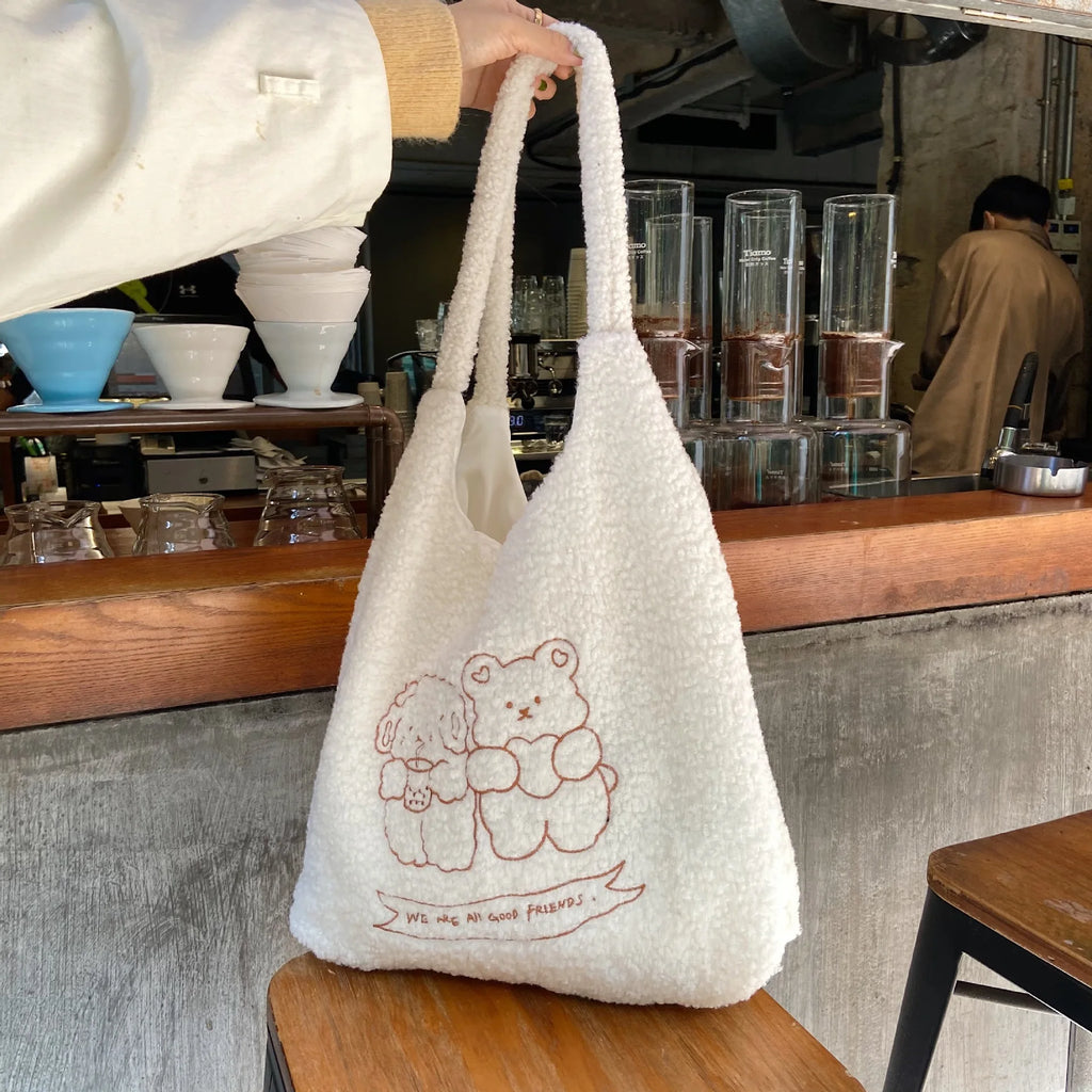 Large Women's Shoulder Shopper Bag Fur Autumn Winter Handbag