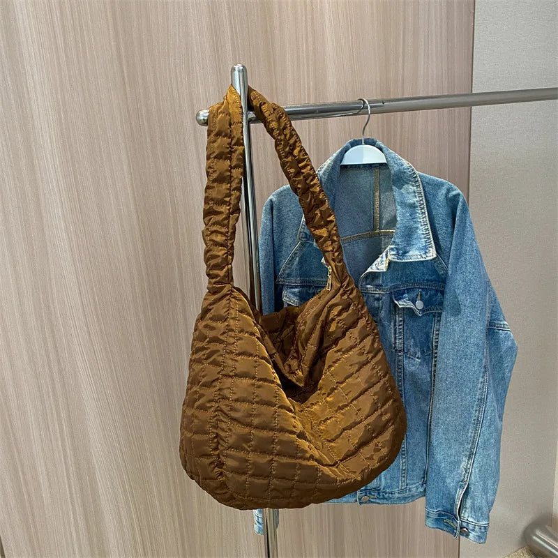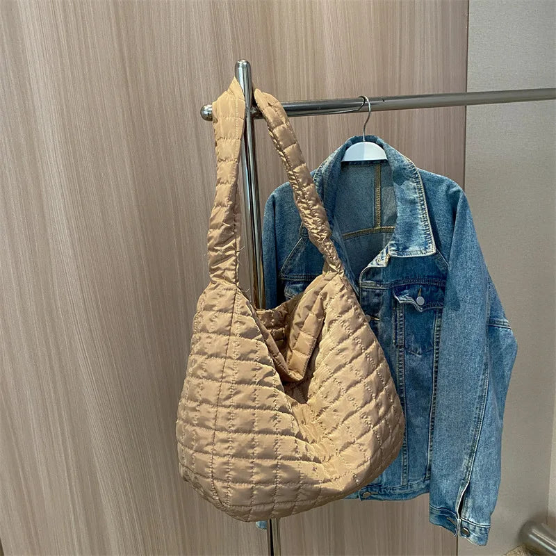 Description:Stay stylish and organized with this lattice pattern shoulder bag made of space cotton. Featuring a feather padded quilted design, this handbag is perfect for everyday use.Features: Spacious tote bag for women Lattice pattern with feather padding Made of high-quality space cotton material Quilted shopper bag with large capacity Ideal...