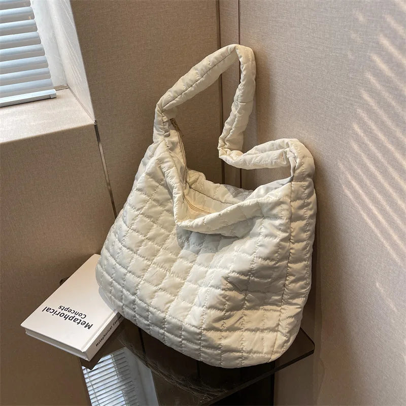 Lattice Pattern Shoulder Bag Cotton Handbag Women Large Capacity Tote Bags