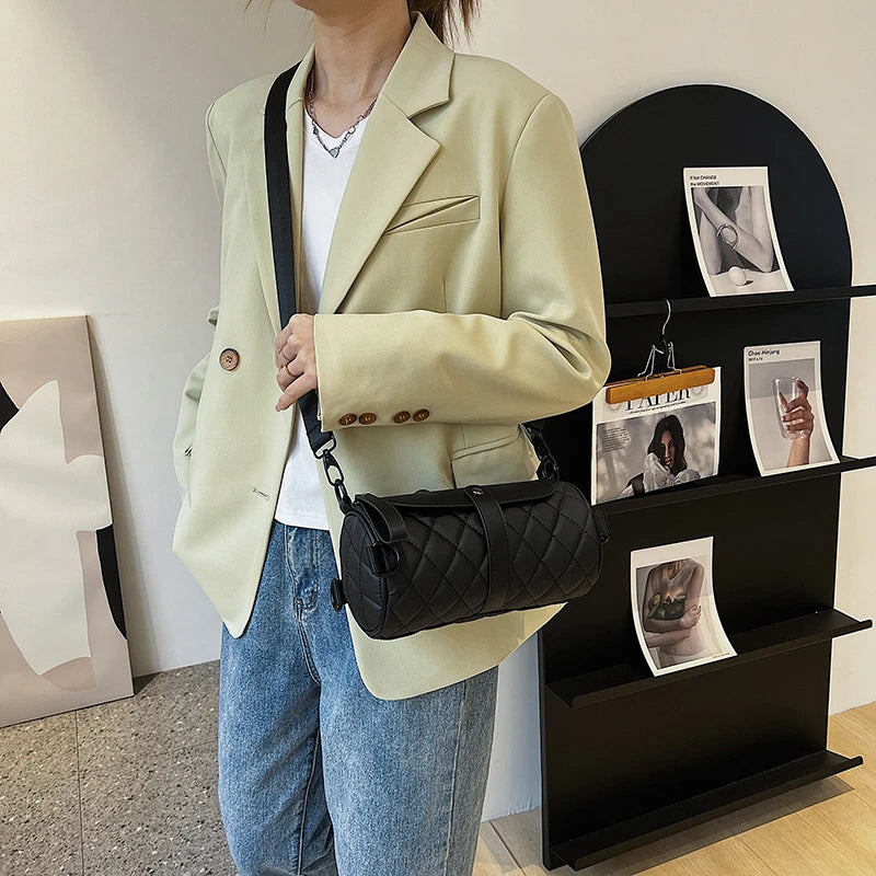 Lattice Tote Barrel Shaped Bag Summer Nylon Women's Handbag