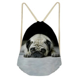 Lazy Pug Dog Drawstring Backpack Storage Bag