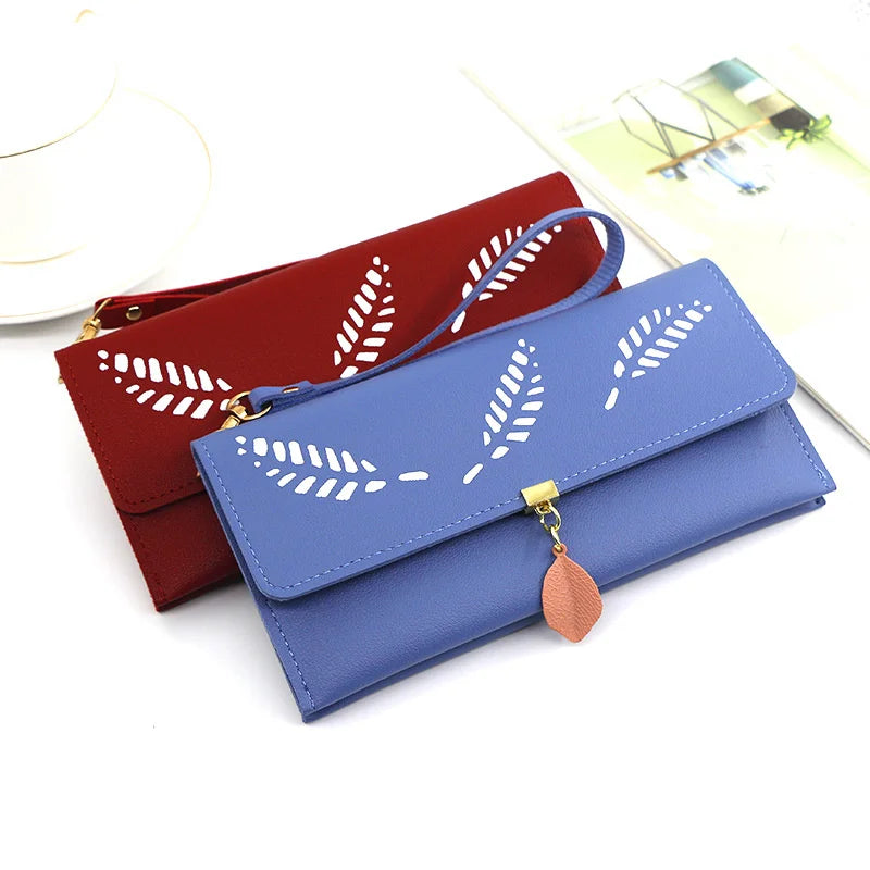 Stay stylish with this fashionable leaf handbag long purse designed to hold your essentials including bank cards, mobile phone, and loose change.