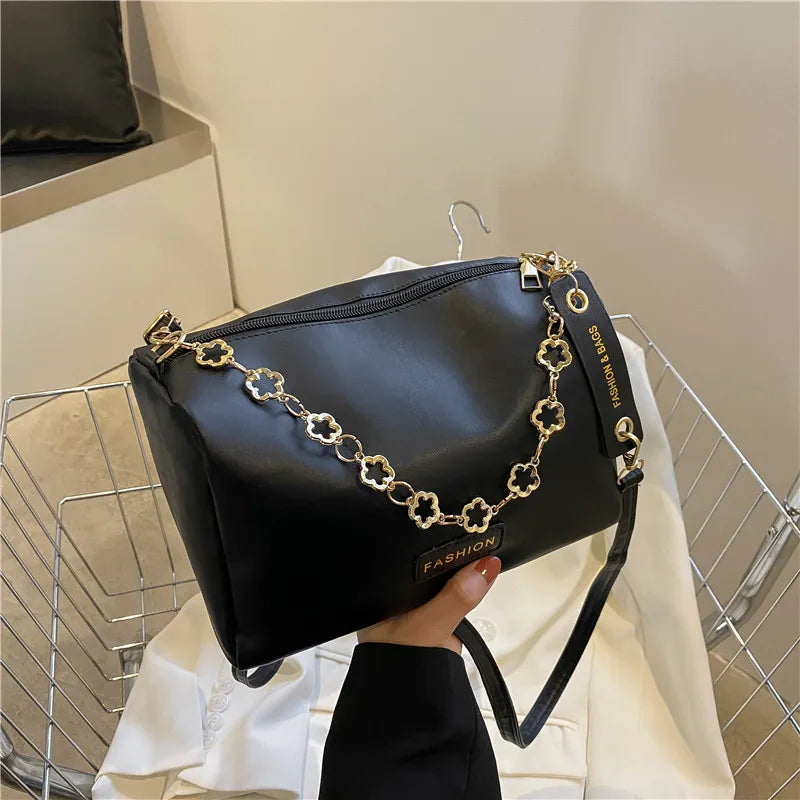 Leather CrossBody Bag with Heavy Chain Women Tote Handbag Shoulder Messenger Pur