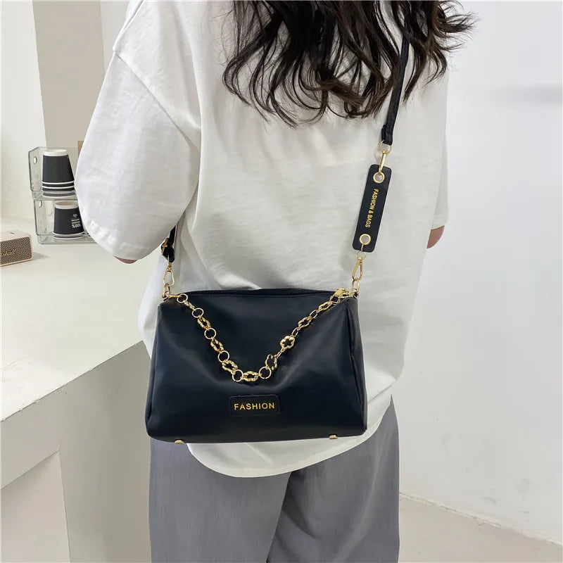 This stylish crossbody bag is made of high-quality leather and features a heavy chain strap. It is perfect for everyday use and can be worn as a tote, handbag, shoulder bag, or messenger bag.