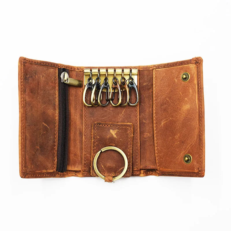 This compact key bag is perfect for organizing keys, cards, and coins. It features a stylish leather design suitable for both men and women.