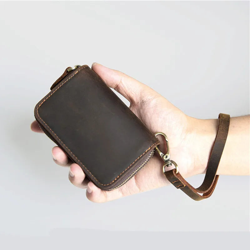 Organize your keys in style with this Leather Key Wallet Keychain. This double deck key case bag is designed to keep your keys in one secure place. Perfect for housekeepers or anyone looking for a stylish key organizer.