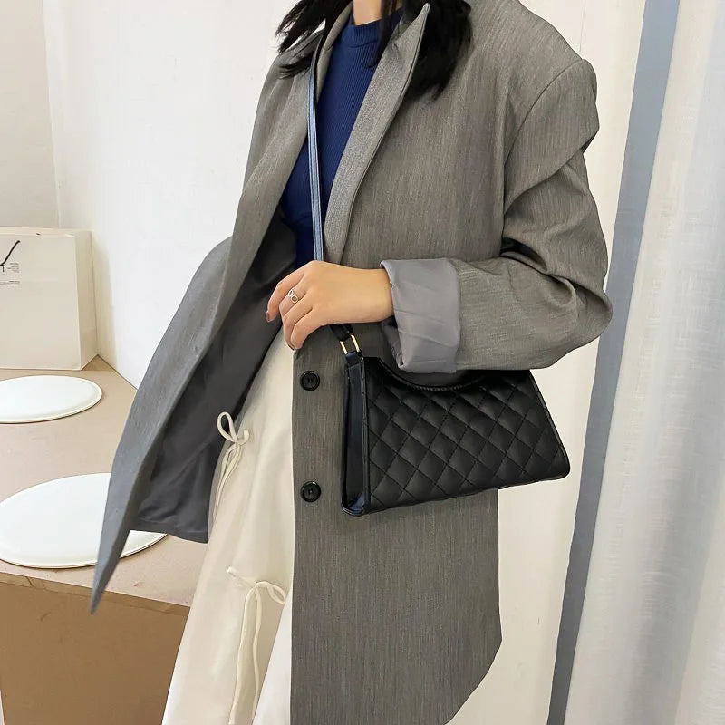 Stay stylish and organized with this chic leather shoulder bag featuring a check pattern. Perfect for travel and everyday use.