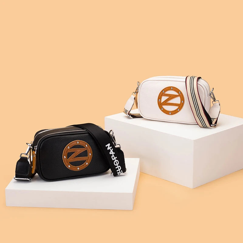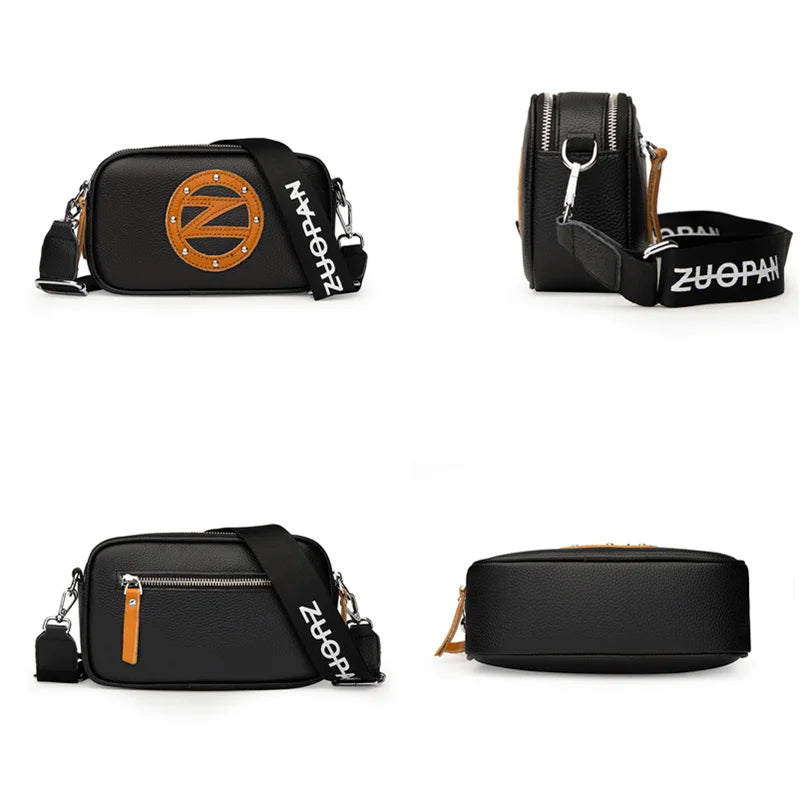 Stay stylish and organized with this versatile leather tote bag. Made of high-quality cowhide, it features double zipper closure and a wild shoulder design.