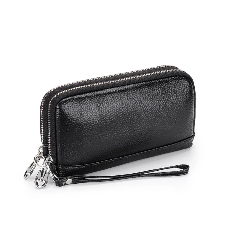 Description:This women's clutch wallet is made of 100% leather with double compartments and a zipper closure. It has a large capacity to hold all your essentials in style.Features: 100% leather construction for durability Double compartments for organized storage Zipper closure for security Large capacity to hold all your essentials Long...