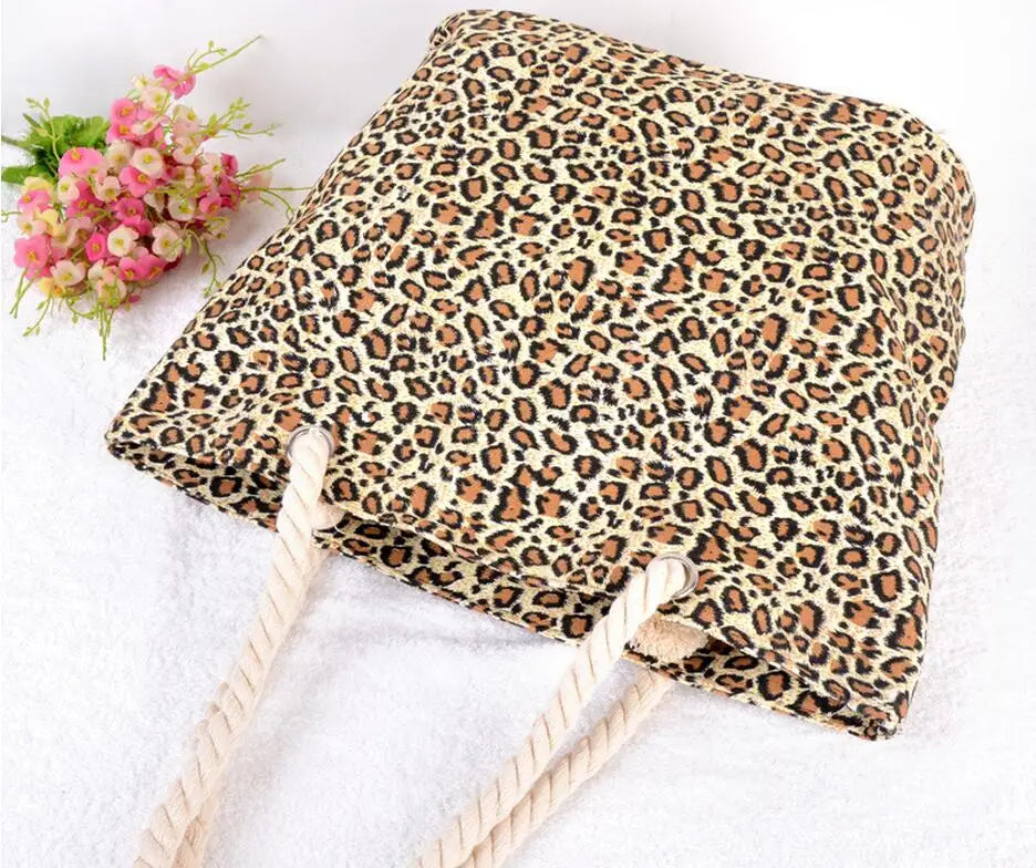 Leopard Bag Women Casual Shoulder Bags Canvas Cotton Handbags