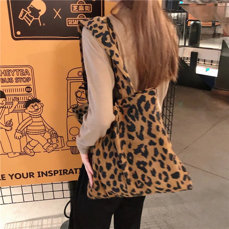 Stay stylish with this leopard corduroy one shoulder canvas bag that's perfect for autumn and winter.
