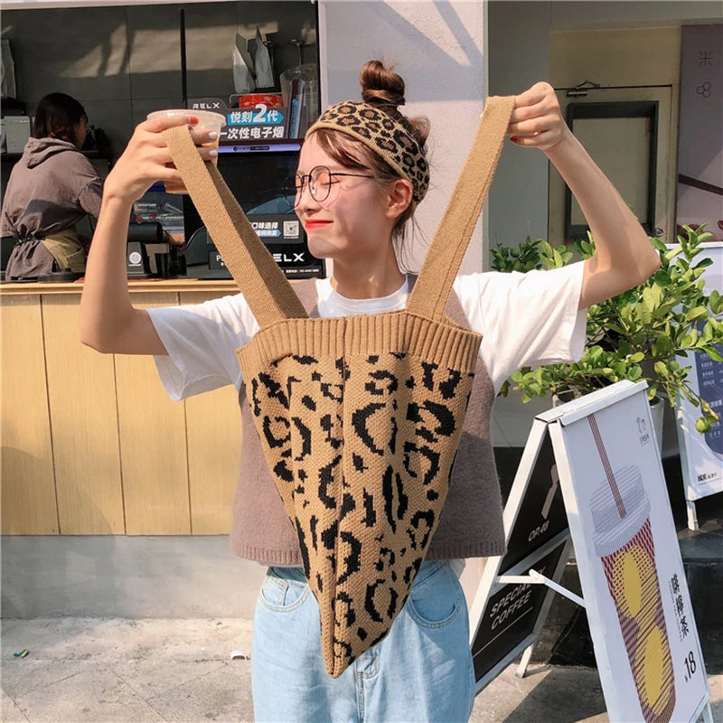 Leopard Knitted Shoulder Bag Large Capcaity Tote Girls Armpit Handbag Purse
