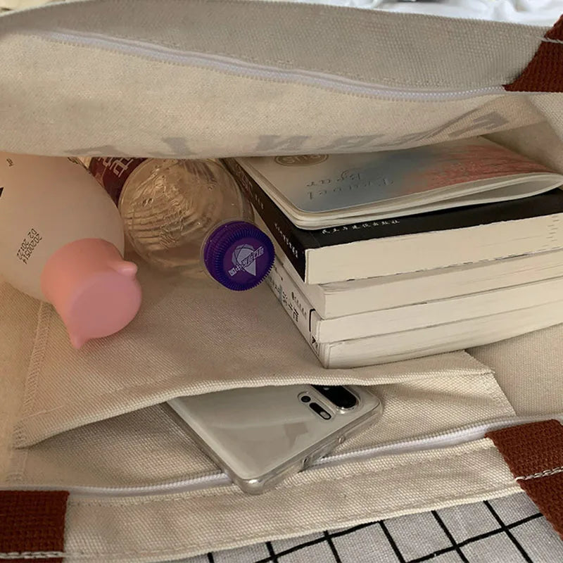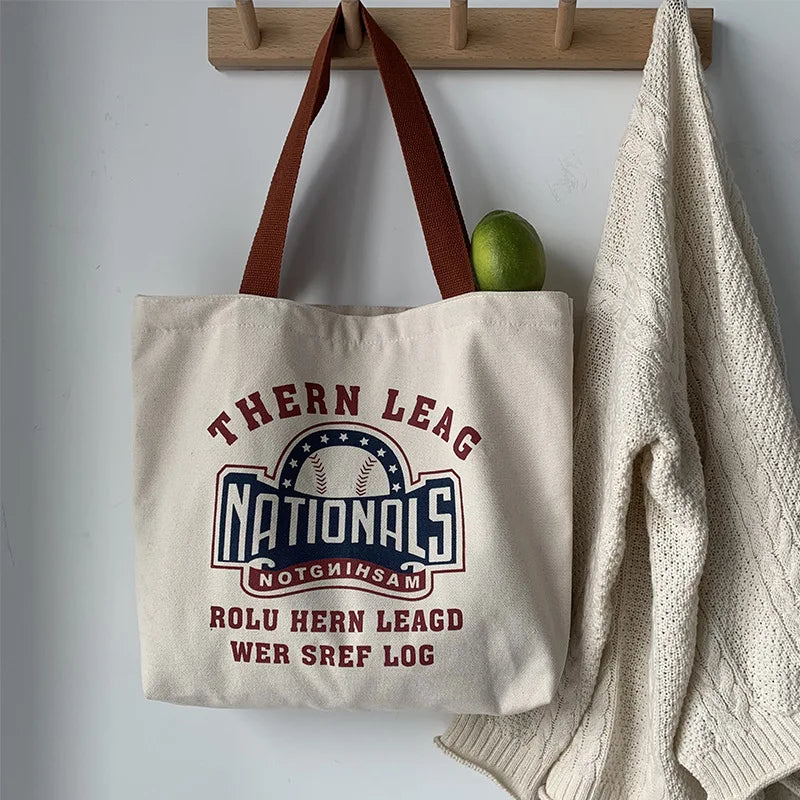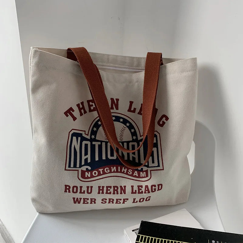 Letters Print Canvas Shopping Bag for Women Eco Handbag Tote