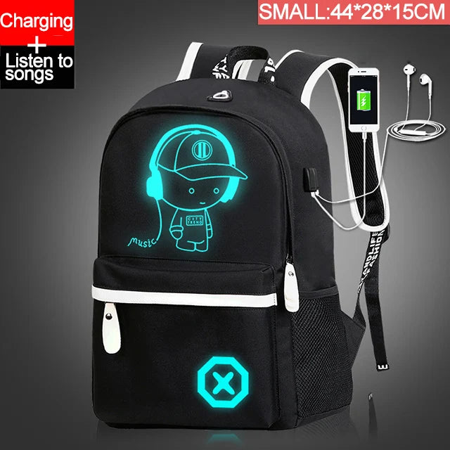 Luminous Animation School Bags USB Charge Anti-theft Laptop Backpack