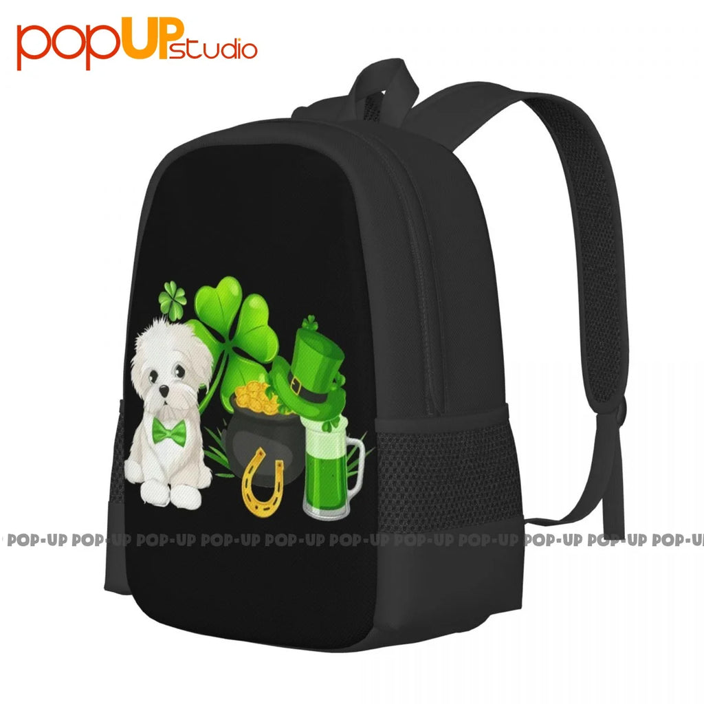 Maltese St Patricks Irish Clover Gift Dog Lover Backpack