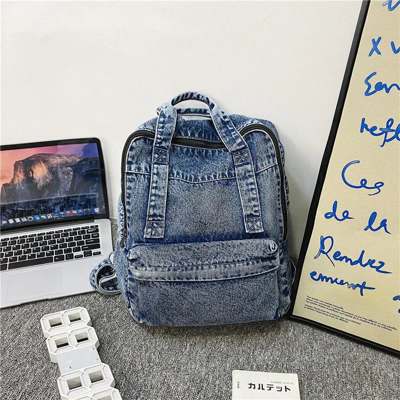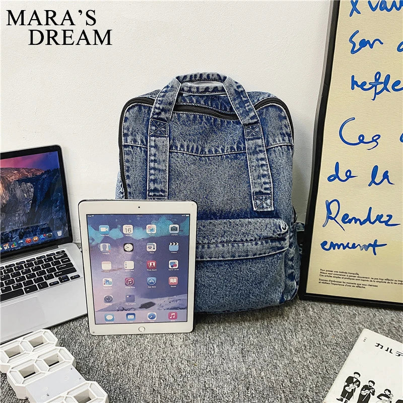 Mara's Dream Denim Women Backpack Retro Travel Bagpack Large Capacity
