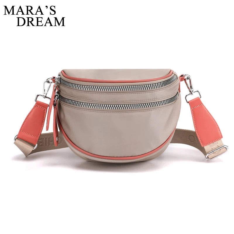 This Mara's Dream saddle shoulder bag is made of nylon, perfect for women. It's crossbody style and small size make it ideal for everyday use. The bag is waterproof to keep your belongings safe and secure.